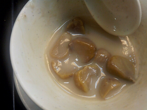 質地濃調度剛好, 很香, 滑就未算好滑, 吃下去栗子味不太重, 但沒有很甜, 清清地不錯. 底下有非常多的栗子, 有大有小的十分足料. 但有些栗子未算淋還有點硬.