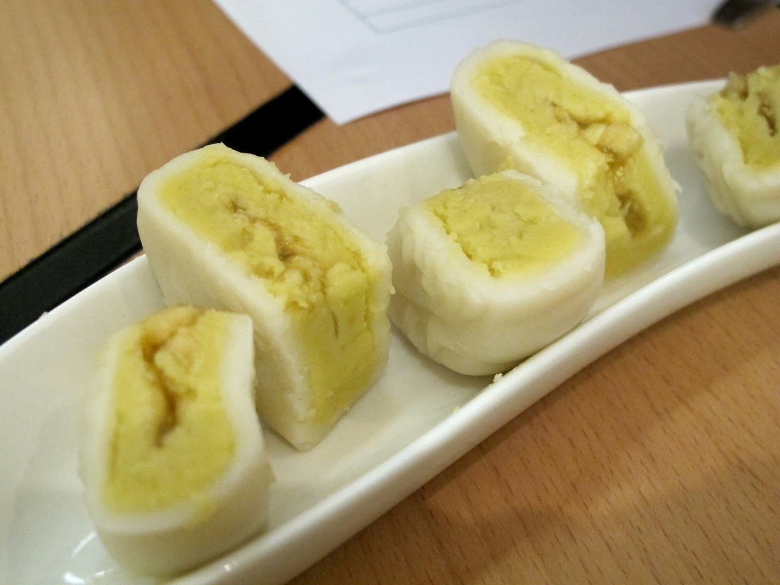 楊枝甘露 - 鮮黃色的外表加上切開來有著鮮艷的黃色餡料不難估到這個就是西柚加芒果的楊枝甘露了. 這款中間的西柚不是很多, 不過能吃到一條條的西柚肉也算是不錯, 加上芒果的清香兩者也能平衡得到. 算是穩陣款式.